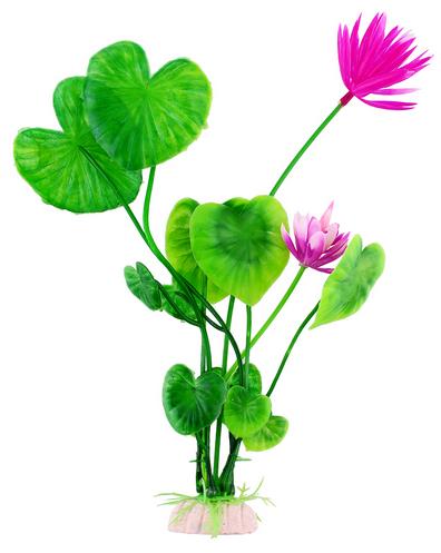 Plastová akvarijní rostlina Fialový Lotus. Rostlina se do akvária umístí jednoduchým způsobem. A to zasypáním plastové vaničky akvarijním pískem.