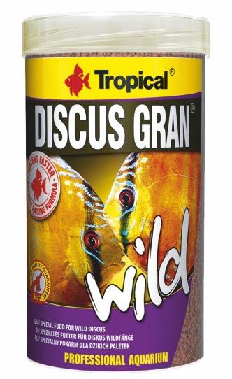 Jemná struktura granulátu, která vlivem vody rychle měkne, způsobuje, že je ryby z odlovů ochotně akceptují. Ve složení krmiva jsou obsaženy řasy: spirulina (Arthrospira platensis), chlorella (Chlorella vulgaris) a také Ascophyllum nodosum i Laminaria digitata, známé jako řasy kelp. Nenasycené mastné kyseliny, bílkoviny (bohaté na exogenní aminokyseliny), vitamíny, které jsou ve spirulině a chlorelle obsaženy, a také mikro a makro elementy z řas kelp (v tom jód, chróm, selen a železo) zaručují rybám dokonalou kondici, intenzivní růst a vitalitu. Velký podíl složek rostlinného původu, včetně řas a ovoce, odráží stravu terčovců v jejich přirozeném prostředí. Při pravidelném krmení granulemi TROPICAL DISCUS GRAN WILD dostávají ryby velkou dávku chlorofylu – zeleného barviva, jehož koncentrovaným zdrojem jsou spirulina a chlorella. Chlorofyl omezuje rozvoj nežádoucích bakterií v trávicím traktu, předcházejíc zánětlivým stavům a společně se zeolitem podporuje vylučování toxinů z organismu ryb. Imunitní systém ryb podporují v boji s patogeny účinné látky česneku a spiruliny. Karotenoidy, pocházející mimo jiné z krilu a červené papriky a dále i dodatek astaxantinu, udržují přirozené barvy ryb a předcházejí jejich blednutí. S ohledem na své posilující vlastnosti je krmivo doporučeno ke krmení ryb během karantény, aklimatizace a rekonvalescence.