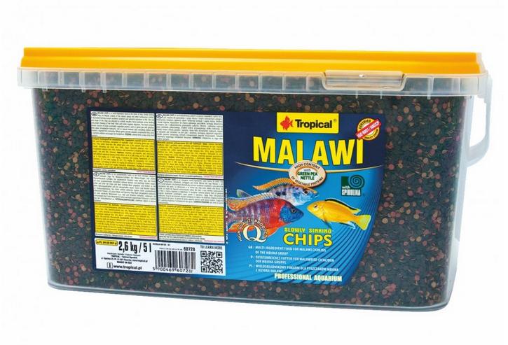 - MALAWI CHIPS je vícesložkové krmivo v podobě nevelkých, pomalu se potápějících chipsů pro tlamovcovité ze skupiny mbuna i pro jiné býložravé cichlidy.