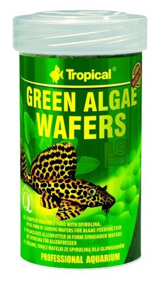 Rostlinné krmivo ve formě zvolna klesajících oplatek s přídavkem řas Spirulina platensis, určené ke každodennímu krmení ryb z čeledi Loricariidae, které požadují ve stravě vysoký podíl složek rostlinného původu a řas. Kromě toho oplatky výborně doplňují stravu všežravých druhů ryb přijímajících potravu u dna a sladkovodních i mořských korýšů. Green Algae Wafers je krmivo s velmi velkou hydrostabilitou (při nasakování vodou, udržuje svojí strukturu a nerozpadává se), což usnadňuje krmení korýšů, a umožňuje rybám, jejichž tlama má podobu přísavky se zuby, kterými ryba škrábe potravu z tvrdých ploch, způsob přijímání potravy blízky přirozenému.