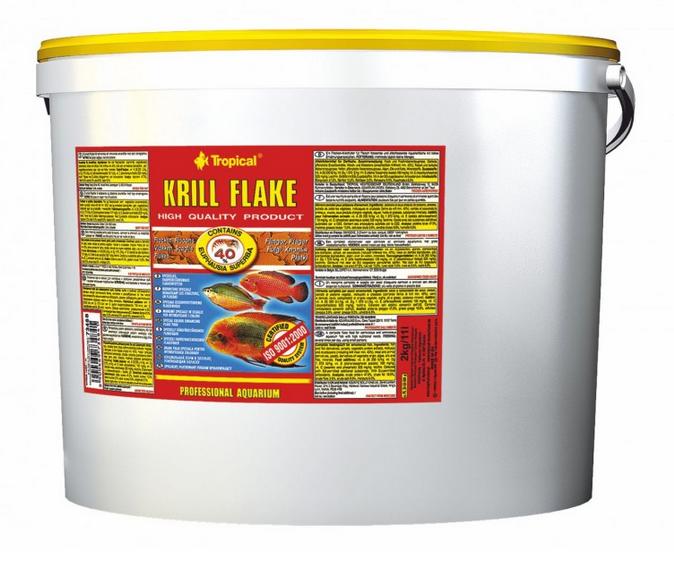 Mnohozložkové, vybarvující krmivo s vysokým obsahem krillu (40%), určené pro denní krmení všežravých a masožravých ryb, zvláště vybíravých, které s nechutí přijímají připravená krmiva. Krmivo chutná rybám díky aminokyselinám, které krill obsahuje. Vysoký obsah krillu obohacuje krmiva o cenné bílkoviny, aminokyseliny, chitin, nenasycené mastné kyseliny mezi nimi Omega-3 a přírodní barviva. Vysoká úroveň karotenoidů, mezi nimi dobře osvojitelný astaxanthin (136 mg / kg) způsobuje, že barvy ryb krmených denně vločkami Krill Flake nabírají na intenzívnosti a lesku. Optimální vyvážené složení krmiva ovlivňuje dokonalou kondici ryb a jejich schopnosti rozmnožování.