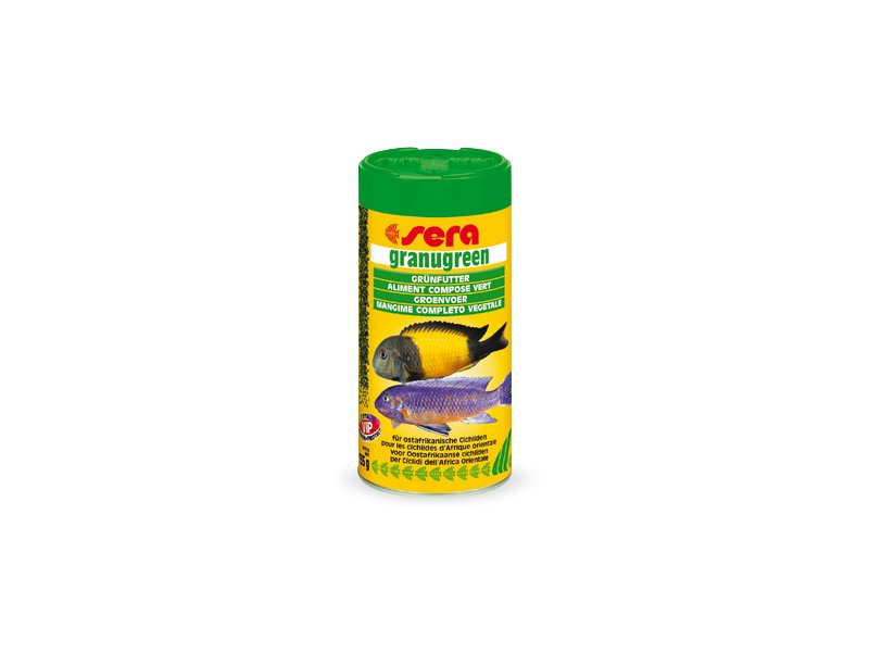 Rostlinné granulované krmivo pro řasožravé cichlidy z jezer Malawi a Tanganika. sera granugreen má vysoký obsah řasy spiruliny bohaté na karoten, což významně podporuje zvýraznění barev těchto působivých okrasných ryb
