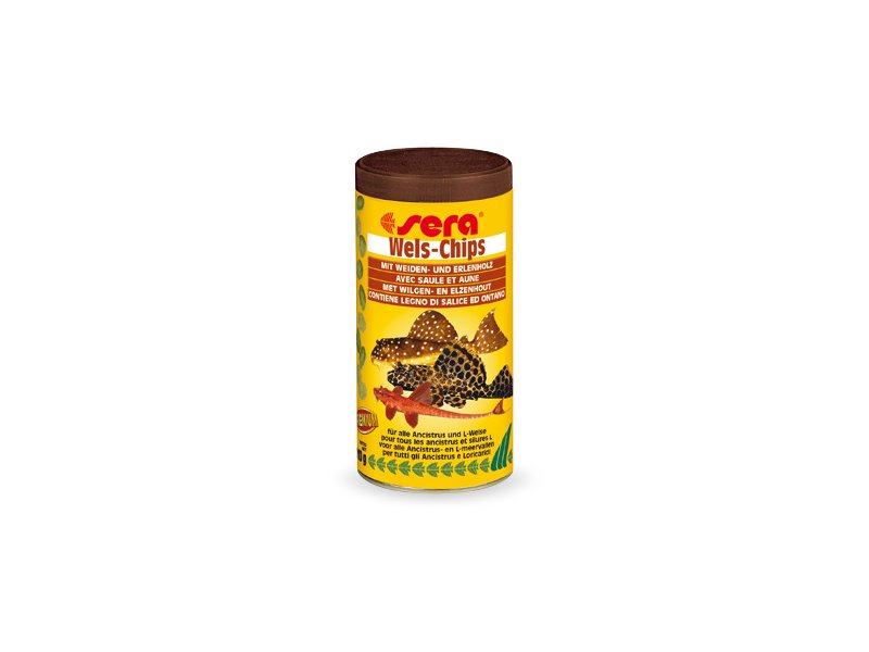 Proto nyní krmivo sera Wels-Chips obsahuje částečky olšového a vrbového dřeva. Toto delikatesní specielní krmivo má velmi pevnou strukturu a ve vodě se nerozpadá několik hodin. Takže jsou ryby obklopeny svou potřevou po dlouhou dobu stejně jako v přírodě. I stydlivé a schovávající se sumečci jsou z úkrytů vylákáni neodolatelnou chutí