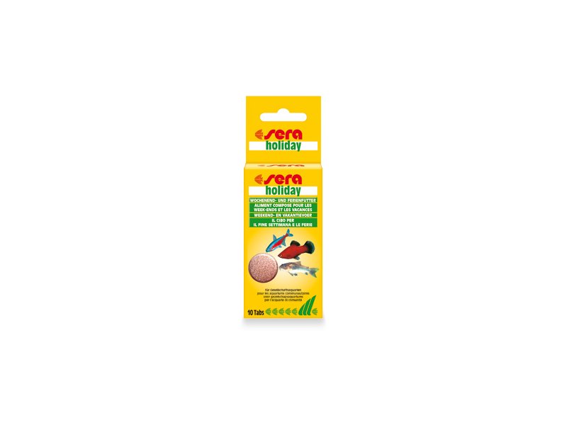 sera holiday je skvělým řešením. sera vyvinula zcela nový typ rybího krmiva, které bude vaše ryby po dobu vaší nepřítomnosti krmit! Díky vylepšeným výrobním technologiím jsme vyvinuli vysoce kvalitní a výživné krmné tablety, které ve vodě zůstanou pevné po celých 7 dní – a nerozloží se. Hodnotné suroviny v krmivu sera holiday jsou postupně uvolňovány tak, že je ryby mohou vrstvu po vrstvě odkusovat. Vybrané suroviny, včetně vysoce kvalitních bílkovin a důležitých minerálů, zajistí, že všechny okrasné rybky ve společných nádržích rády sera holiday přijmou za potravu. Tablety sera holiday neobsahují žádné nestravitelné pojící látky, ale jsou 100% krmivem