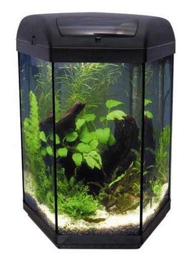 Kompletněvybavenéšestihrannéakvárium.