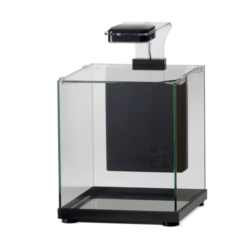 - závěsný filtrační systém: filtrační náplně – keramické kroužky, filtrační vata a aktivní uhlí (nevhodné pro mořskou vodu); ježek – plastová mřížka k osídlení bakteriemi; sací trubka; čerpadlo (2,5 W, 200 l/h); výpust