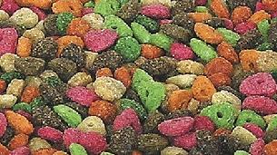 Složení: obiloviny, semena, zelenina, vedlejší výrobky rostlinného původu, minerální látky, vitamíny A, D3, E, B1, B2, B6, B12, biotin (popř.ořechy)