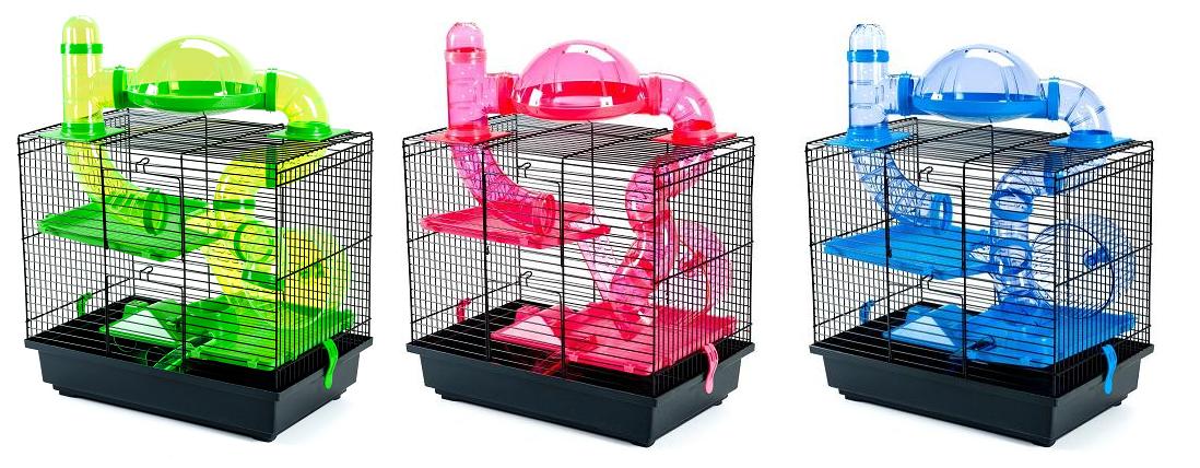 Klec s oblíbeným labiryntem pro malé hlodavce, hlavně křečky. Součástí klece je kolotoč, domeček,