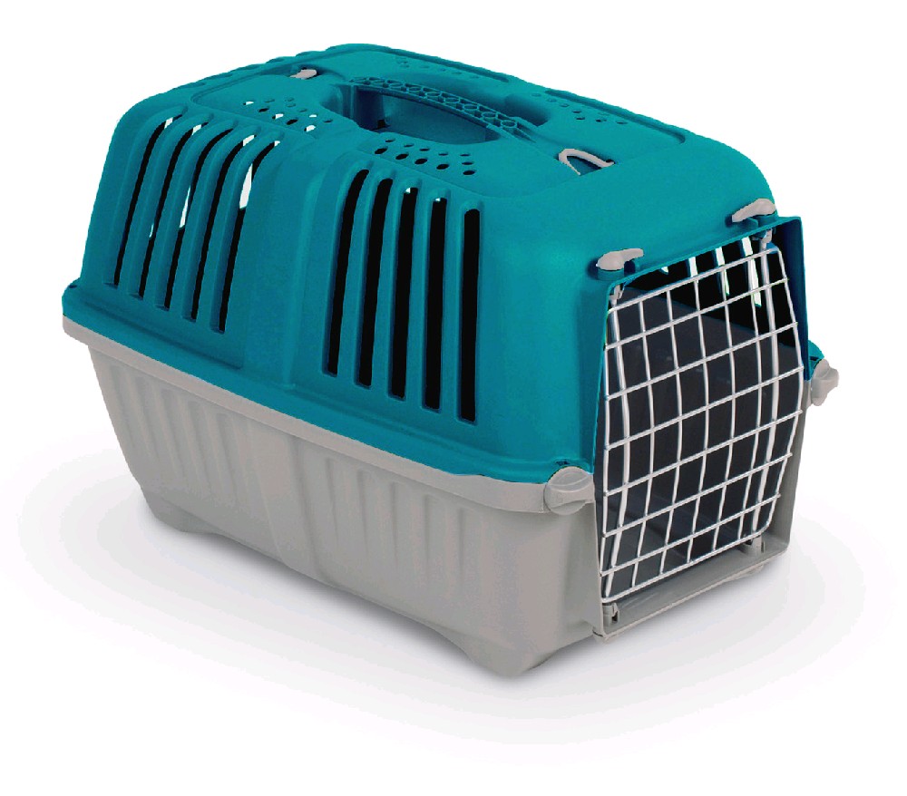 Odlehčená plastová přepravka Pratiko pro kočky a psy s kovovými dvířky.