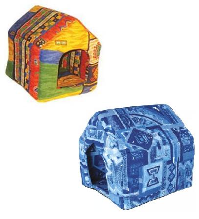 Barevná boudička pro psy, kteří rádi odpočívají schovaní a nerušeni okolím.