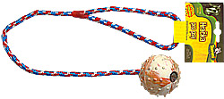 Materiál tvrdá guma. Dutý s rolničkou, povrch s výstupky. Průměr míčku 6,5 cm, délka šňůrky 60 cm.