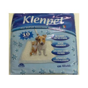 Vysoce absorbční pleny pro štěňata a ostatní zvířata Klenpet s neprosákavou spodní části. Pleny Klenpet pohlcují pachy a nepropustí vlhkost. Rozměr 60x60cm. 10ks plen v balení