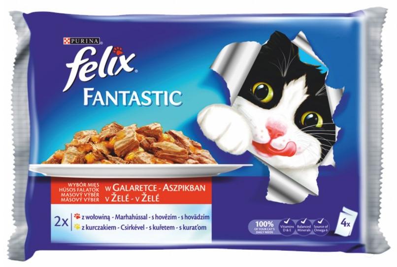 FELIX kapsička 4x100g hovězí, kuře v želé