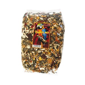 Krmivo pro velké papoušky s různými druhy semínek a červenými papričkami