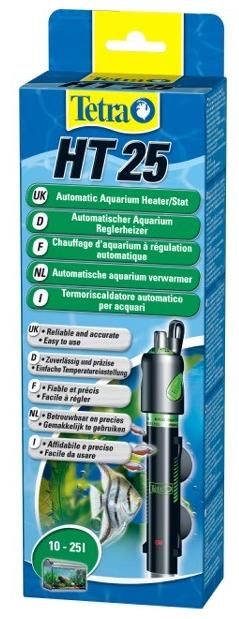 TetraTec HT 25 je kvalitní topítko s termostatem do akvárií. Topítko je vodotěsné, může být celé ponořené, akorát se musí dodržet pro jeho správnou funkci minimální ponor, který je na topítku vyznačen. Díky termostatu můžete jednoduše v akváriu udržovat stálou teplotu, což je pro akvarijní rybičky velice důležité, předcházíme tak stresu a oslabení organismu. Topítko je také důležité při léčbě různých onemocnění (například krupička nebo plíseň), léčbu je vhodné podpořit zvednutím teploty. Topítko umístíme pomocí přísavek do zadního rohu akvária, nastavíme požadovanou teplotu pomocí otočného knoflíku a již se nemusíte o více starat (samozřejmě občas zkontrolujte funkci topitka pomoci akv.teploměru, obzvláště když je topítko nove). Topítko se sepne (poznáte podle svítící kontrolky) jakmile teplota vody spadne pod vámi nastavenou hodnotu. Topítko má vhodné barevné provedení, aby bylo v akváriu co nejméně nápadné. Pro bezpečnost a spolehlivost je tělo topítka vyrobené z odolného skla, má spolehlivé spínače a topná část je vyrobena ze speciální dvouvrstvé keramiky. Důležité - před manipulací s topítkem ho vždy odpojte od elektřiny a nechte vychladnout, při vyndání rozehřátého topítka z vody je více než možné, že praskne skleněné tělo topítka a to nám pak už nikdo do reklamace nepřijme. Výkon topítka je 25W a je vhodné pro akvária o objemu 10 - 25l