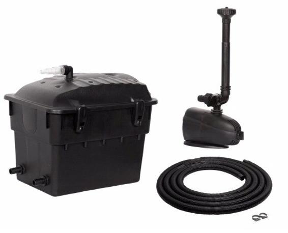 Jezírková filtrační sestava KlartJet 10000 obsahující jezerní průtokový filtr, čerpadlo a UV lampu 9W. Vhodný do jezírka o objemu max. 10 000 L.