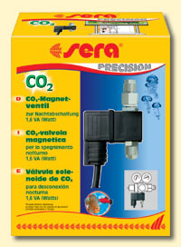 Pro automatické přerušení přísunu CO2 je magnetický ventil připojen mezi redukční ventil a následující CO2 přístroje.Odpojení přísunu CO2 se doporučuje především v noci resp. pokud chybí světelná energie, protože v této době rostliny nespotřebovávájí žádný CO2. sera CO2-magnetický ventil lze připojit na jakýkoliv běžný časový spínač. Nová 1,6W technika zabraňuje přehřívání a hlučnosti