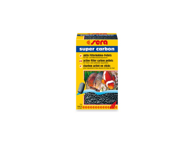 Rychle a spolehlivě absorbuje látky a barviva z akvarijní vody. Žlutavý nádech akvarijní vody zmizí. Voda se křišťálově vyčistí, sera super carbon (sera aktivní uhlí) neovlivňuje hodnotu pH. sera super carbon neobsahuje fosfáty a nitráty.